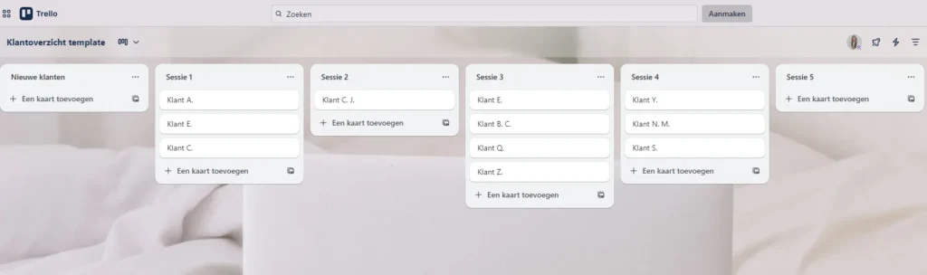 Trello is zó veel meer dan een takenlijst. Zie het als een digitaal whiteboard waarop je alles binnen je je bedrijf overzichtelijk maakt. Voor elk belangrijk thema – denk aan klanten, marketing, financiën of projecten – kun je een eigen plek creëren door middel van een bord. Binnen zo’n bord werk je met lijsten en kaarten die je volledig zelf kunt indelen. Zo ontstaat er één centrale plek waar je alles terugvindt en niets tussen wal en schip valt.